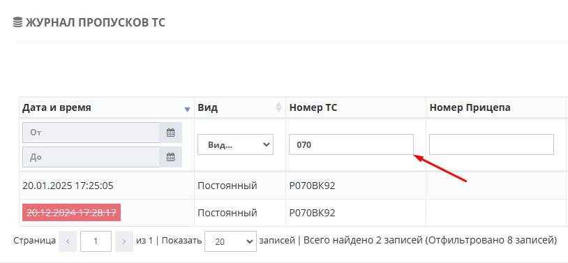 Контроль автоматического проезда (въезд/выезд) транспорта ПО ПРОПУСКАМ