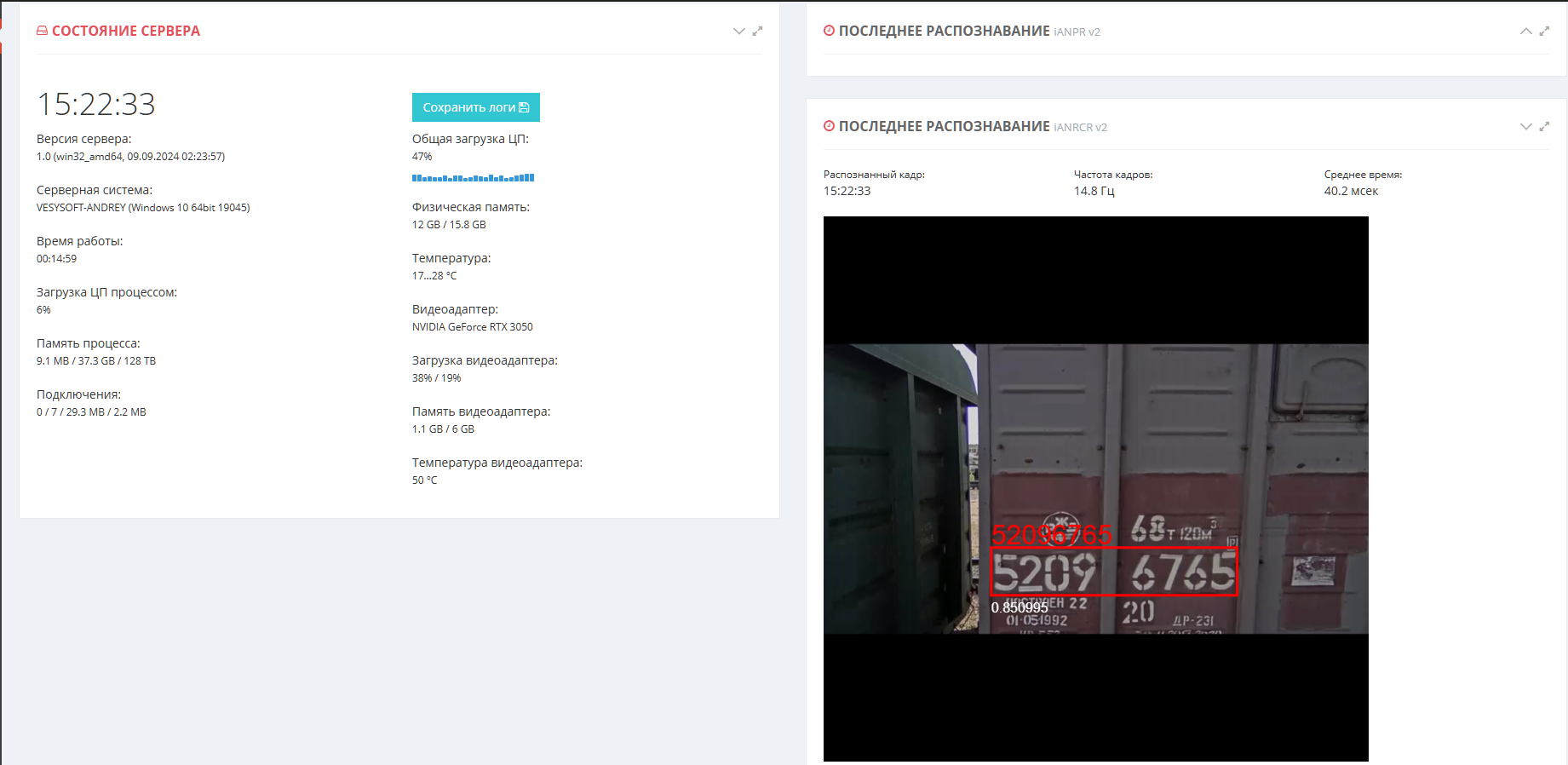 Сервер распознавания номеров вагонов (RecognizeService) может устанавливаться на отдельном (выделенном) ПК и взаимодействовать с ПО UniServer AUTO по сети