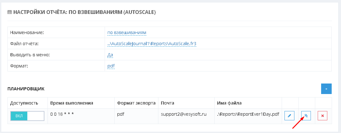 Данное руководство содержит пошаговый алгоритм настройки автоматического формирования отчета каждый день в 18:00 за текущий день с сохранением в файл на компьютере и последующей отправкой на e-mail на примере отчета «по взвешиваниям».