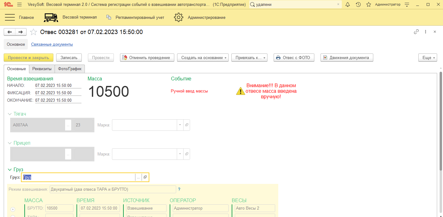 Пошаговая инструкция для весовщика (ручной ввод массы и даты)