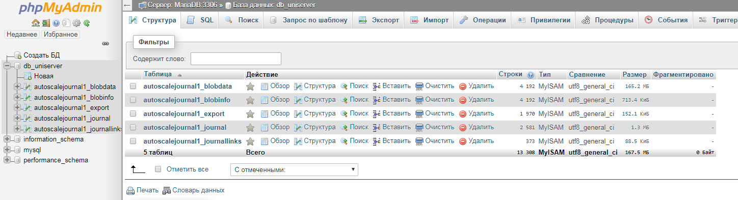 Настройка журнала (справочника) на использование СУБД "MySQL"